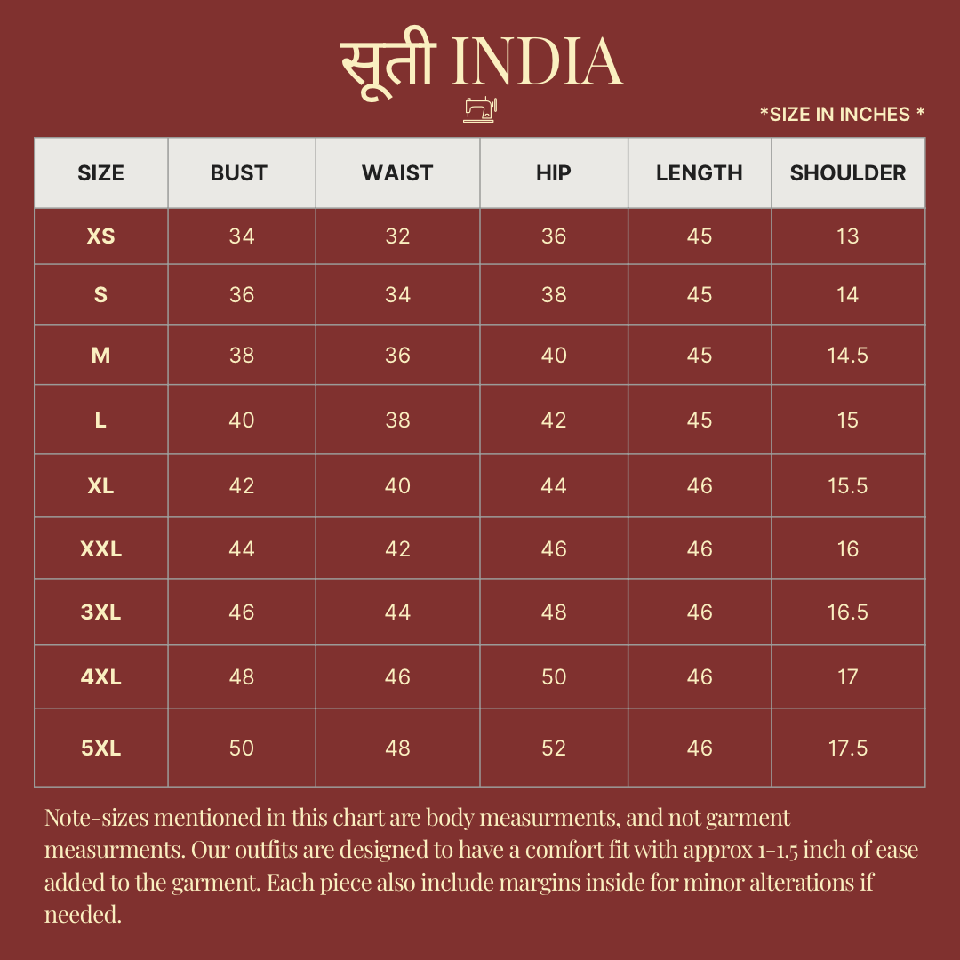 - Kurta: Straight fit with V-neck and 3/4 sleeves
